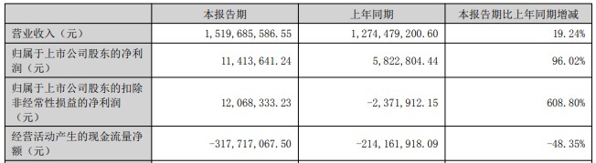 2025年上半年,亿道信息实现营业收入15.20亿元,同比增长19.24%;归属于上市公司股东的净利润为1141.36万元,同比增长96.02%;归属于上市公司股东的扣除非经常性损益的净利润为1206.83万元,上年同期为-237.19万元;经营活动产生的现金流量净额为-3.18亿元,上年同期为-2.14亿元。