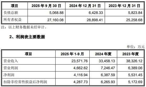 2023年度、2024年度、2025年1至9月,成为信息营业收入分别为38,326.12万元、33,458.13万元、23,571.76万元,净利润分别为5,531.45万元、6,387.59万元、4,116.94万元,扣除非经常性损益后净利润分别为5,172.69万元、6,265.93万元、4,287.73万元。